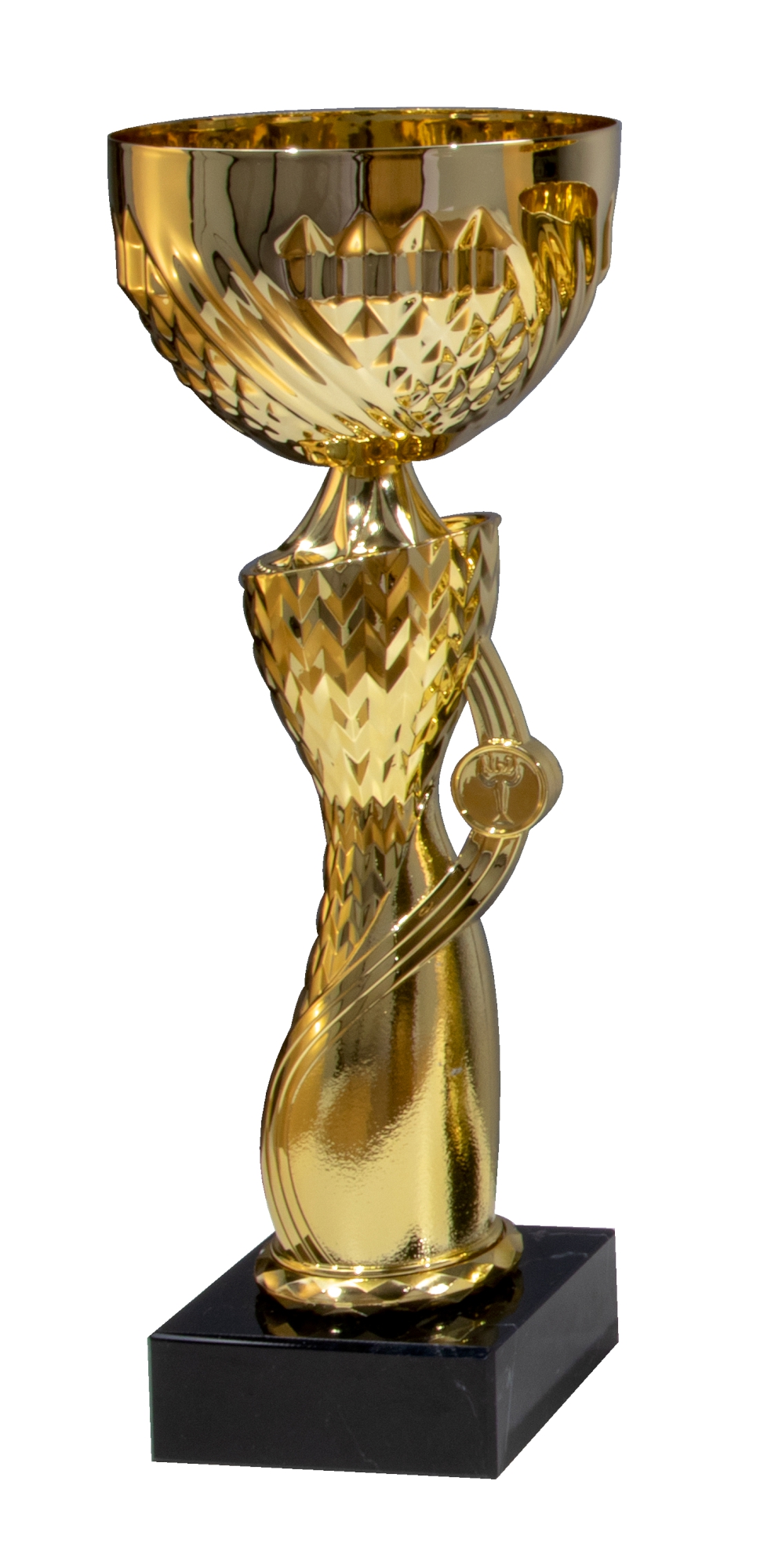 Pokalserie in Gold/Silber mit Standartemblem und Sockelbeschriftung